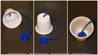 amb una tassa de iogurt o un got de plastic,